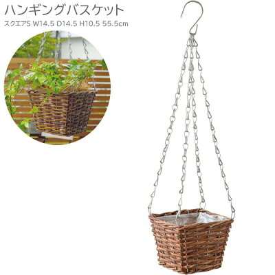 ハンギングバスケット プランター 吊り下げ 室内 スクエア S おしゃれ 吊り鉢 11614 プランター ハンギング 柳 ガーデニング ナチュラル ハンギングボックス 鉢カバー 植木鉢 庭 園芸 観葉植物 フック ポット 花 緑 植木 フラワーポット