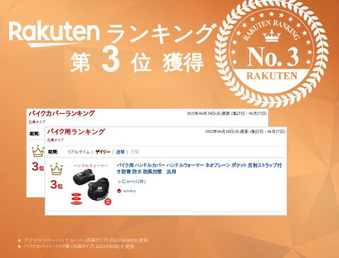 バイク用 ハンドルカバー ハンドルウォーマー ネオプレーン ポケット 反射ストラップ付き 防寒 防水 防風対策 汎用