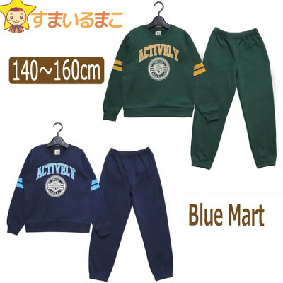 ★ 男の子 裏起毛 スウェット 上下セット 140cm 150cm 160cm グリーン ネイビー 18533 Blue Mart ブルーマート 子供服 キッズ ジュニア セットアップ あったか パジャマ 長袖 トレーナー スウェット上下 スエット