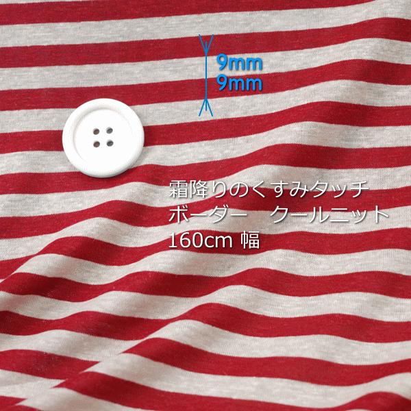 ニット生地 冷感 ビスコース リネン 9mm ボーダー 160cm幅 きなり 赤 50cm単位 はかり売り 連続カット 布 生地