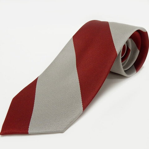 生地供給元:山梨県西桂町 渡戸繊維 商品詳細 レップストライプ(米国式:左上り縞) 色 濃赤×シルバー 柄 ワイドストライプ 約5cm巾 組織:人目織 素材 ポリエステル100% 帝人ポリエステル繊維 テトロン 135デニール使用 サイズ(約) 大剣幅8cm 長さ142cm 仕様 家庭洗濯対応補強縫製 日本製 店長から一言 当店オリジナルの日本製ネクタイです。