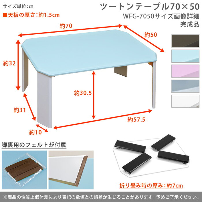 商品番号 WFG-7050 商品説明 完成品 シンプルでどこでも使える明るいカラーのセンターテーブル! 折れ脚タイプで収納場所を選ばず持ち運びも簡単です! 天板と脚の色を変えた可愛くて実用的なツートンテーブル。